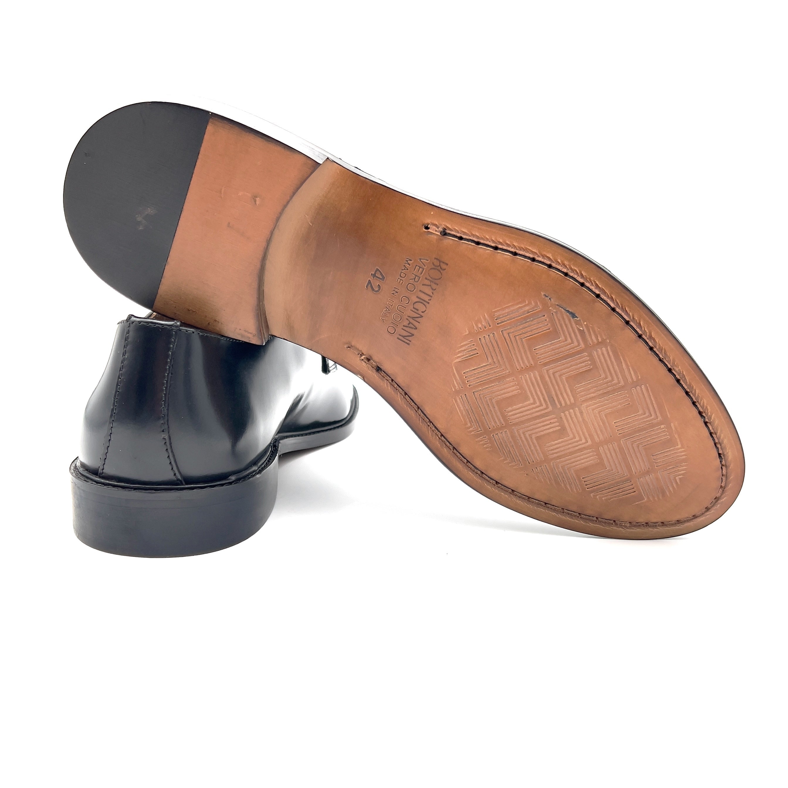 Sole: natural leather with anti-slip grooves and Blake stitching, synonymous with elegance and durability.